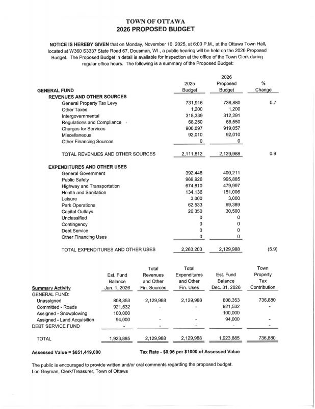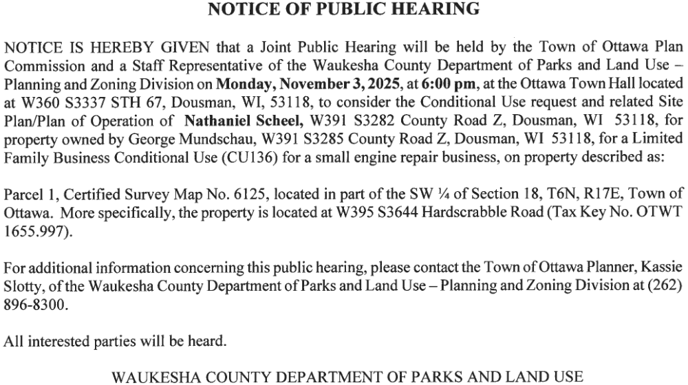 STATE OF WISCONSIN TOWN OF OTTAWA WAUKESHA COUNTY